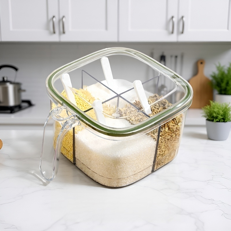 علبة توابل المطبخ المنزلية محكمة الإغلاق مقاومة للرطوبة برباعية الأقسام مدمجة لحفظ الملح وMSG وال